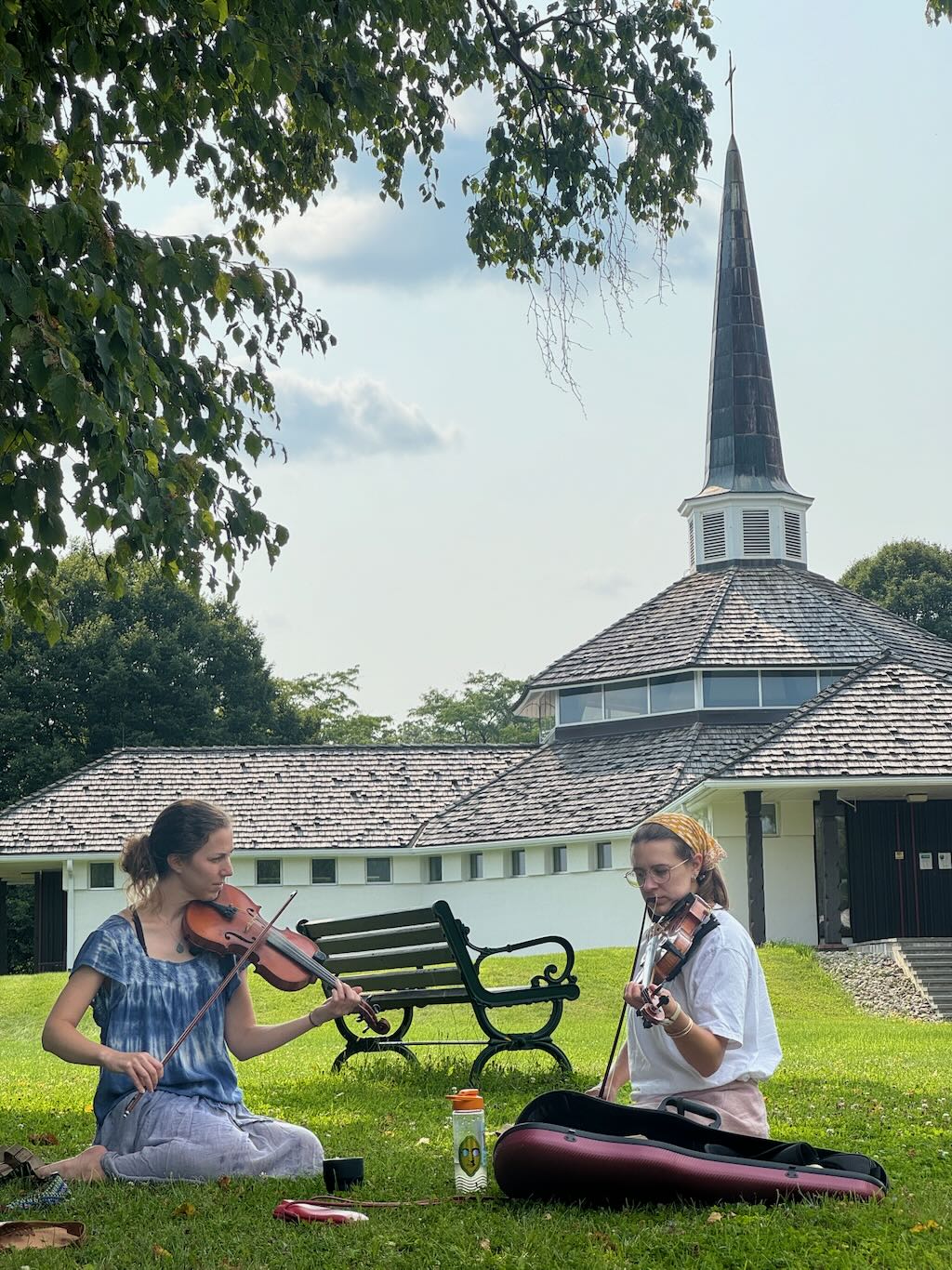 The residency in its current form runs two individual week-long sessions per year in the summer, with twelve to fifteen artists per session. Artists live in the main guesthouse, St. Joseph’s, each with their own private single room. As a community, we share a large living room, kitchen, and common bathroom. Visual artists have access to a shared studio (not individual studios) in the monastic crafts building; musicians have access to various quiet rooms and the monastery piano; writers have access to the library, great room, and conference room, as well as a writing desk in their private room.Meals are included in the residency fee. For lunch and dinner, everyone eats in the refectory with the monks. Each residency session begins on a Monday afternoon and ends the following Sunday around 11am.